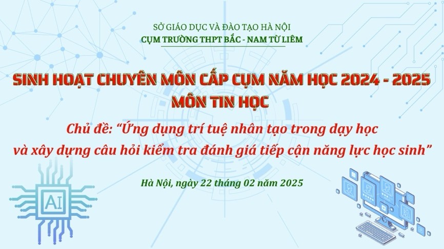 Nhằm nâng cao chất lượng giảng dạy và cập nhật những phương pháp dạy học hiện đại trong môn Tin học, ngày 22/02/2025 tại trường THPT Mỹ Đình đã diễn ra buổi sinh hoạt chuyên môn cấp Cụm THPT Bắc – Nam Từ Liêm môn Tin học theo chủ đề “Ứng dụng trí tuệ nhân tạo trong dạy học và xây dựng câu hỏi kiểm tra đánh giá tiếp cận năng lực học sinh”. Buổi sinh hoạt chuyên môn cấp Cụm với sự tham gia của các thầy cô giáo đến từ các trường trong khu vực. Chương trình không chỉ là cơ hội để chia sẻ kinh nghiệm thực tiễn mà còn giúp giáo viên tiếp cận những ứng dụng công nghệ mới trong giảng dạy.