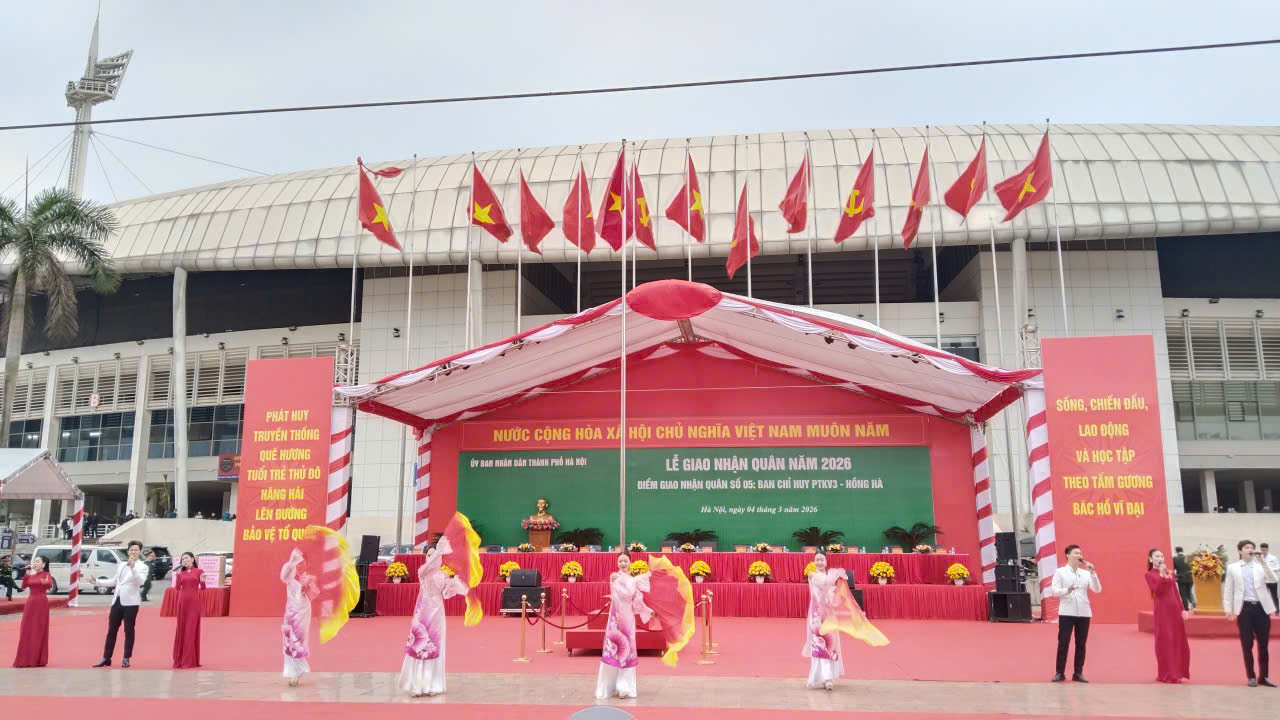 Thực hiện Kế hoạch số 161/KH-BCH ngày 22/02/2026 của Bộ Tư Lệnh Thủ đô Hà Nội, Ban Chỉ huy PTKV3 – Hồng Hà về việc hiệp đồng tổ chức Lễ giao nhận quân năm 2026; căn cứ Kế hoạch của UBND phường Từ Liêm về việc tổ chức Lễ giao nhận quân năm 2026, Lễ giao nhận quân – Điểm số 05 đã được tổ chức trang trọng vào sáng ngày 04/03/2026 tại Quảng trường Sân vận động Mỹ Đình (đường Lê Đức Thọ, Từ Liêm, Hà Nội).