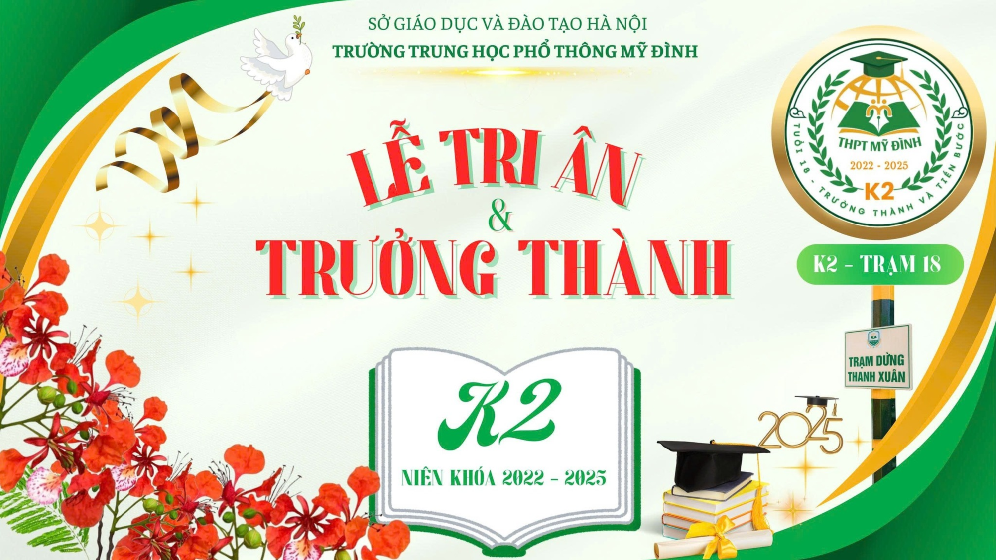 💐 Ngày 26/5/2025, Trường THPT Mỹ Đình đã trang trọng tổ chức Lễ Tri ân & Trưởng thành dành cho học sinh Khóa 2 (niên khóa 2022–2025). Đây là một sự kiện thiêng liêng, xúc động, ghi dấu bước ngoặt tuổi 18 đầy ý nghĩa của các em học sinh lớp 12.