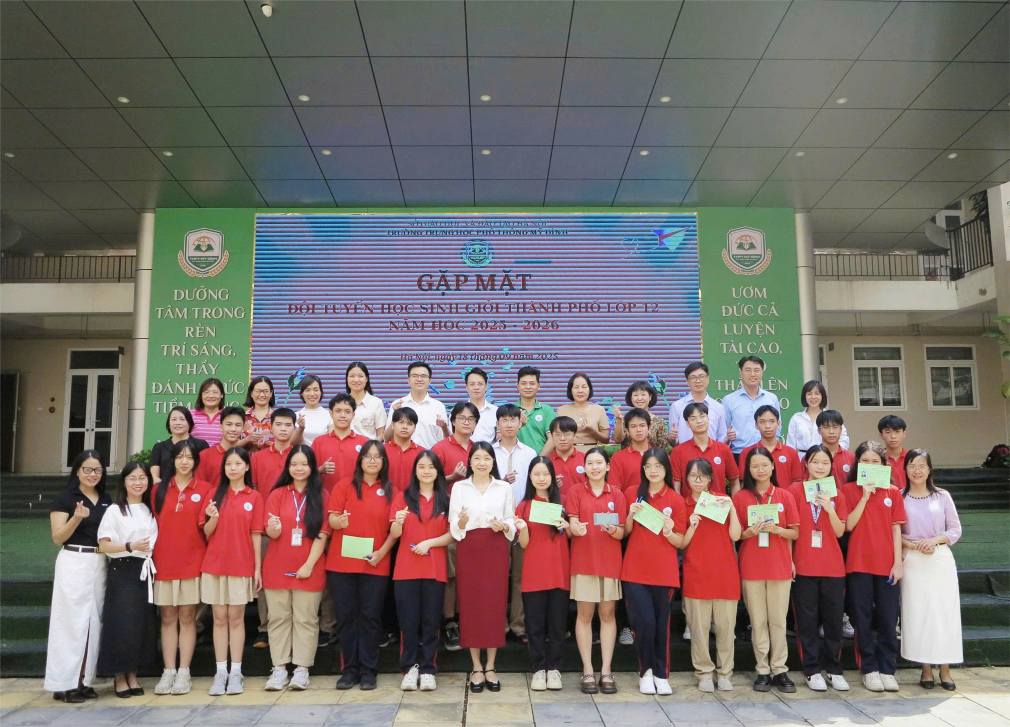 Sáng nay, 18/9/2025, Trường THPT Mỹ Đình đã tổ chức buổi gặp mặt Đội tuyển dự thi Học sinh giỏi lớp 12 cấp Thành phố các môn văn hóa, năm học 2025 – 2026. Đây là dịp để Nhà trường ghi nhận, động viên tinh thần và tiếp thêm niềm tin, ý chí cho các em trước khi bước vào kỳ thi quan trọng.
