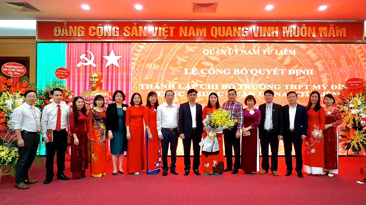 Sau Lễ chào cờ, đồng chí Đặng Văn Tiến - Phó Trưởng ban Tổ chức Quận ủy thay mặt Ban tổ chức công bố Quyết định thành lập Chi bộ trường THPT Mỹ Đình và Quyết định chỉ định Chi ủy Chi bộ Trường THPT Mỹ Đình nhiệm kỳ 2021 - 2025. Theo đó, Chi bộ trường THPT Mỹ Đình được thành lập gồm 11 đảng viên và là chi bộ cơ sở trực thuộc Quận uỷ; Chi bộ có trách nhiệm lãnh đạo toàn diện các hoạt động của đơn vị theo quy định Điều lệ Đảng, đúng đường lối, nghị quyết của Đảng và chính sách pháp luật của Nhà nước. Ban Thường vụ Quận ủy cũng đã chỉ định đồng chí Nguyễn Thu Hà – Hiệu trưởng trường THPT Mỹ Đình giữ chức danh Bí thư Chi bộ.