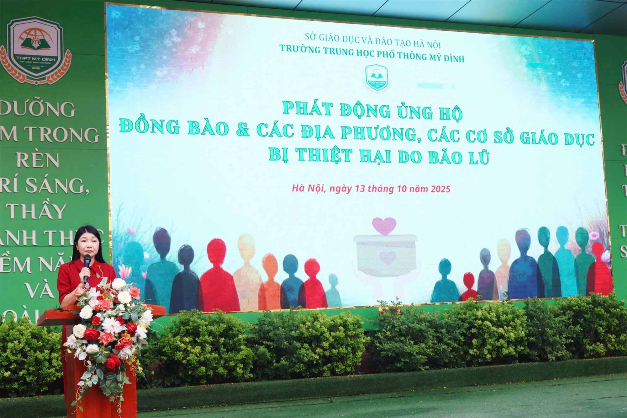 Hưởng ứng lời kêu gọi của Sở Giáo dục và Đào tạo Hà Nội, ngày 13/10/2025, Trường THPT Mỹ Đình tổ chức Lễ phát động ủng hộ các địa phương và trường học chịu thiệt hại nặng nề sau bão số 10 (Bualoi) và bão số 11 (Matmo).